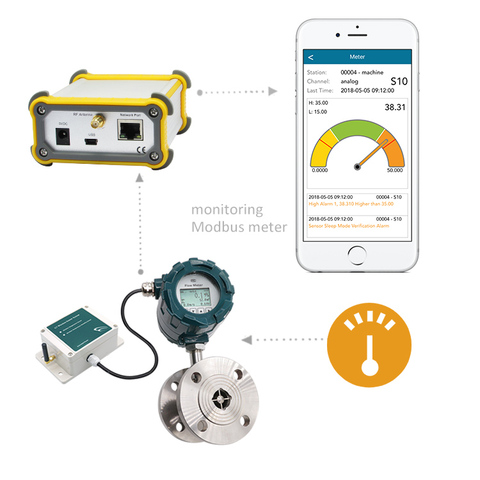 Wireless sensor G7 transmits measurement of any industrial analog sensor with 4-20mA /0-5VDC signal to Base Station via wireless signal. Base Station collects all the wireless sensors readings and uploads to central server in interval via Modbus TCP protocol.