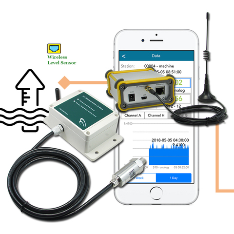 G7-AD-LP wireless water level analog sensor and Base Station, you can start monitoring sensor measurement online remotely.